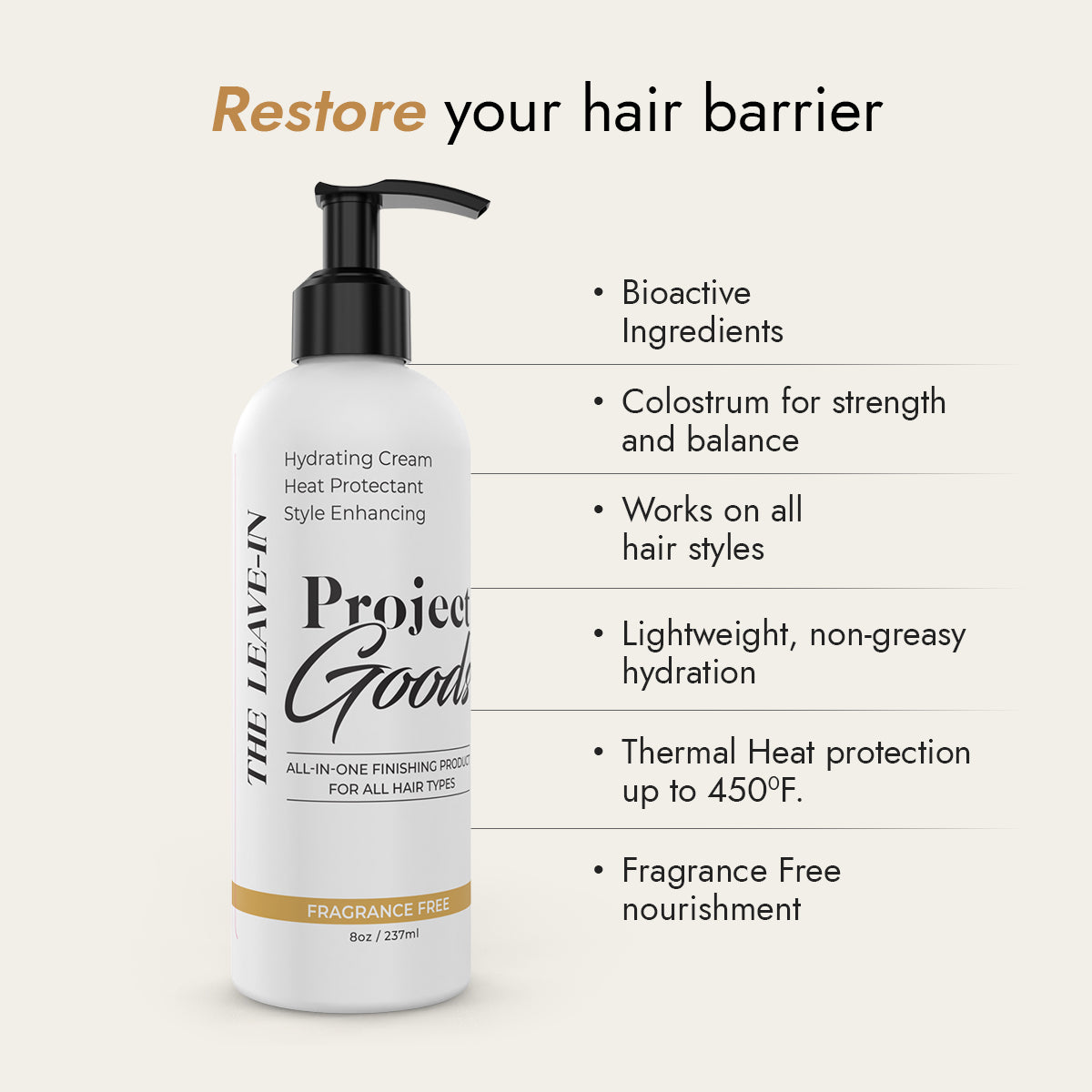 PROJECT GOODS fragrance free Leave-In hair styling product with the antioxidant superfood COLOSTRUM!